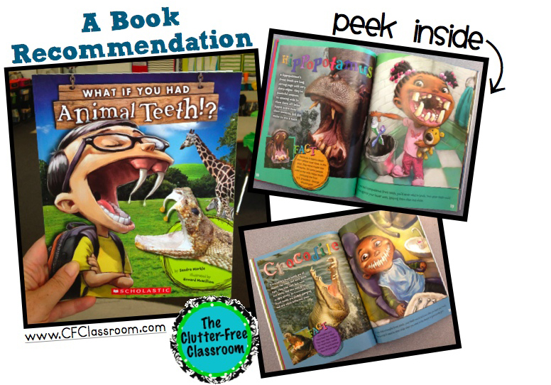 Ce n’est pas une histoire mais un album informatif sur les animaux et leur dentition. Oui, je sais, comme ça, ça semble un peu ennuyant. Mais pas du tout. C’est que la façon de présenter le tout est ludique et désopilante. La première page nous montre le vrai animal avec ses dents et on y décrit la fonction et les caractéristiques des dites dents. Bon, normal, jusque là! Mais c’est la deuxième page qui fait le succès!
